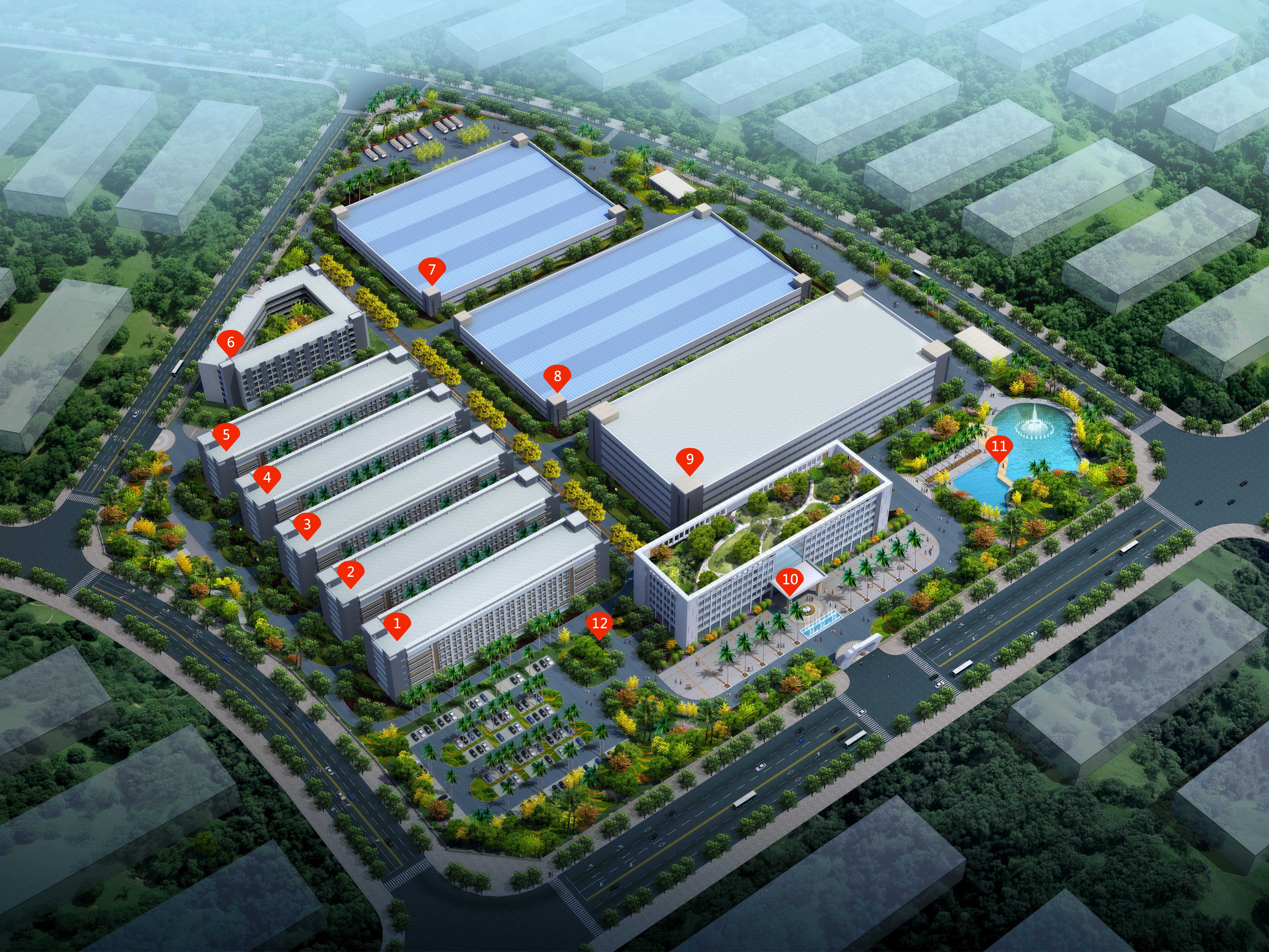 產業園占地10.7萬㎡,總建筑面積16.5萬㎡,其中6萬㎡(5棟)對外出租,每棟6層,單層2000㎡。綠化率為22%,產權年限為50年。產業園為入駐企業量身打造了高標準廠房、辦公區、會議區、展示區等,配套提供員工公寓、飯堂、便利店及體育娛樂設施。按照園區規劃,1號樓以寫字樓為主,可用作企業總部,設計研發,行政辦公,業務接洽等;2~5號樓可作中小企業辦公、加工。