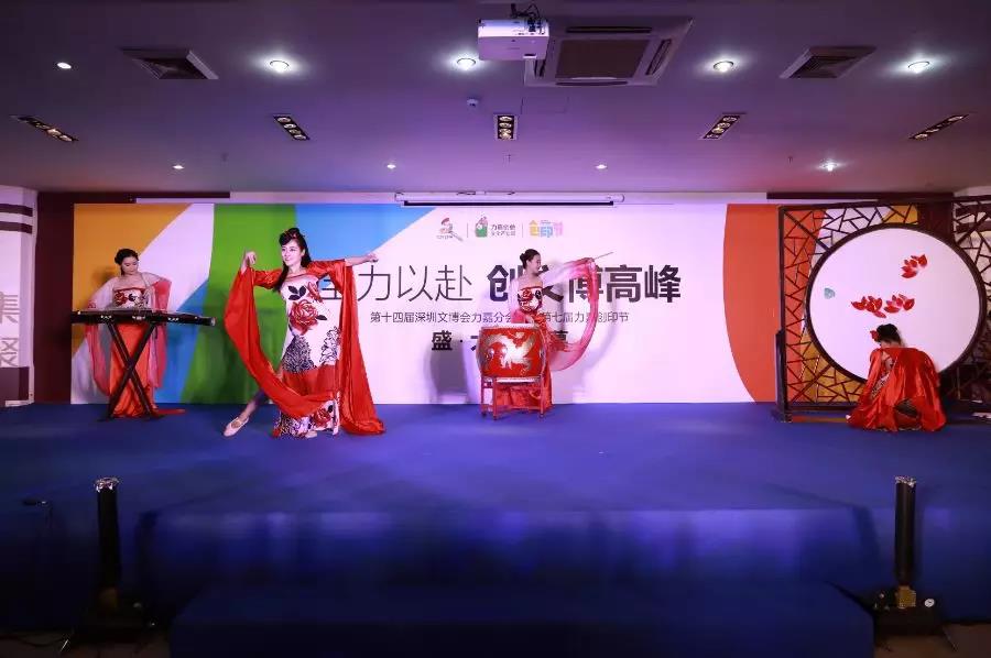? 文博會伊始,隨著輕柔的音樂緩緩而來,水袖舞者在臺上翩然起舞,如玉的素手婉轉流連,裙裾飄飛,似有無數花瓣飄飄蕩蕩的凈空而下,優美的舞姿讓現場來賓如癡如醉,與此同時臺上也一并進行現場書畫寫生,大師在紙上揮毫潑墨,奇妙的景色躍然于紙,動靜結合、古典與創新融合的表演讓人目不轉睛,瞬間博得來賓熱烈的掌聲,也因此成功拉開了此次開幕式的帷幕。
