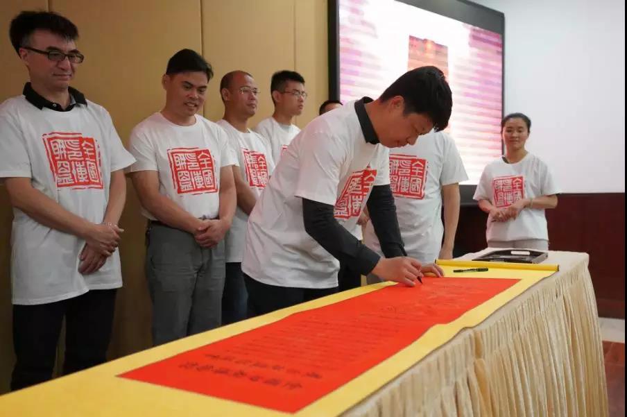 與會博物館、展示館領導在倡議書上簽字并合影