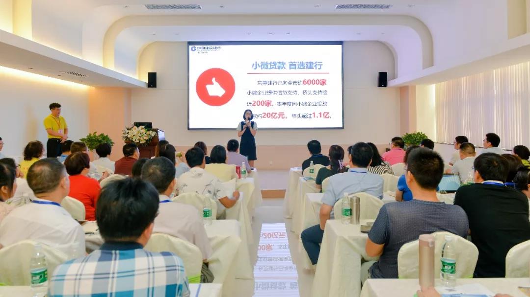 6月3日,大家早早趕到會議現場,首先由建設銀行東莞市分行橋頭支行行長徐冕講話,接著由客戶經理馮歡進行企業貸款的詳細介紹。