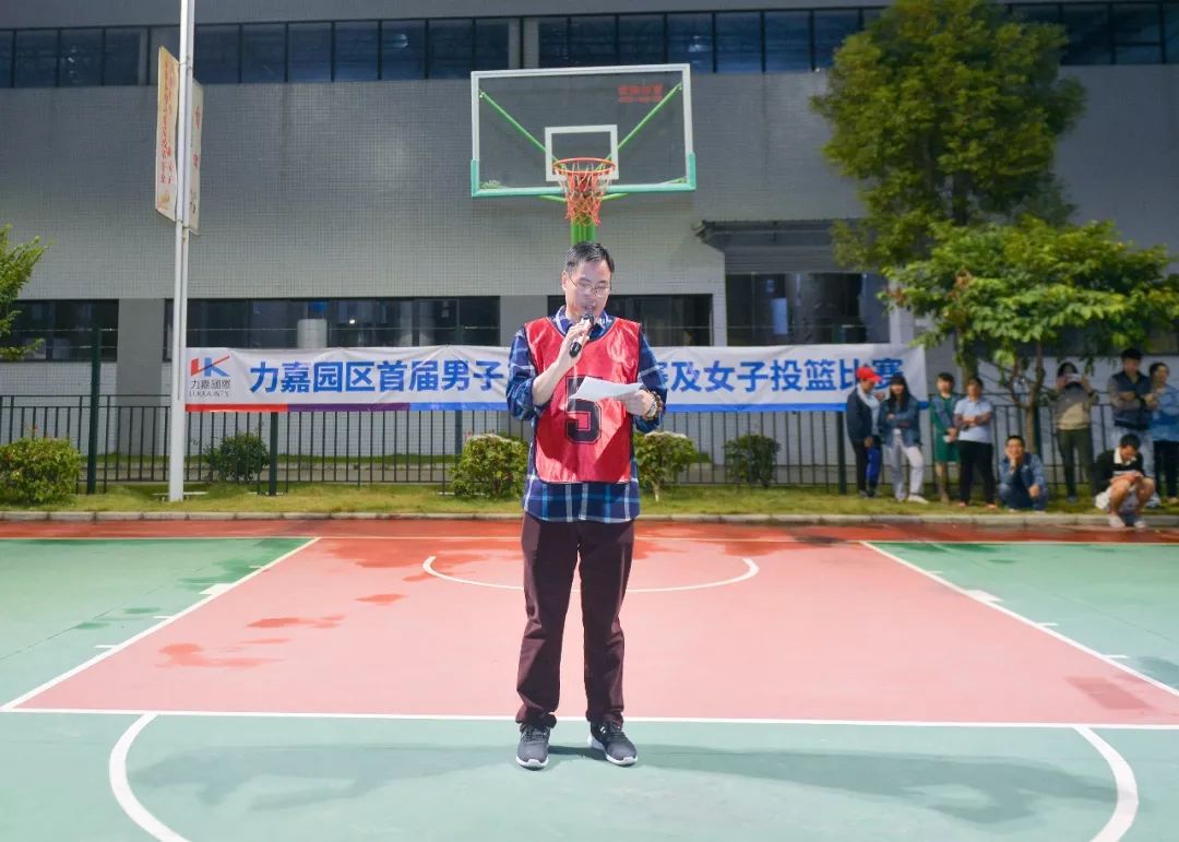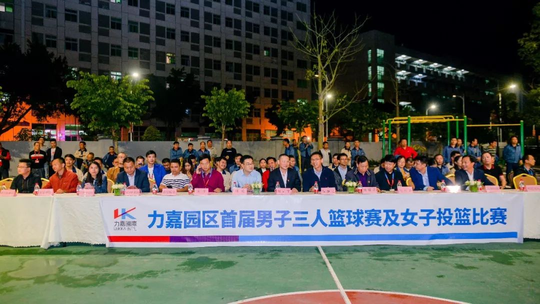 2018年12月20日晚上,力嘉(東莞)園區首屆員工三人男子籃球賽、女子投籃比賽活動開幕式在我園籃球場隆重舉行,參加本次活動開幕式的領導有宣教文體局副局長、文廣中心主任劉克平,宣教文體局副局長、青少年活動中心主任劉倫,橋頭鎮總工會副主席楊耀忠,力嘉集團副總經理馬楚力,董事長助理、工會主席馬松綿、園區入駐企業代表,以及參加籃球比賽的員工,近兩百人共聚于此。