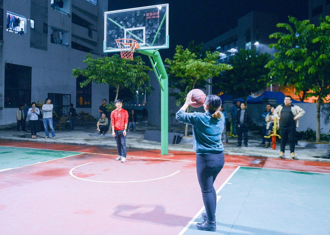 與此同時,女子投籃比賽也是火熱進行中,女球員們輕裝上陣,籃球在女球員手上拋出時,呈現一道優美的弧線,籃球碰撞籃筐而未進時的惋嘆,精準進球之后的狂呼吶喊,使這個已經有陣陣寒意的初冬有了熱度,多了活力。