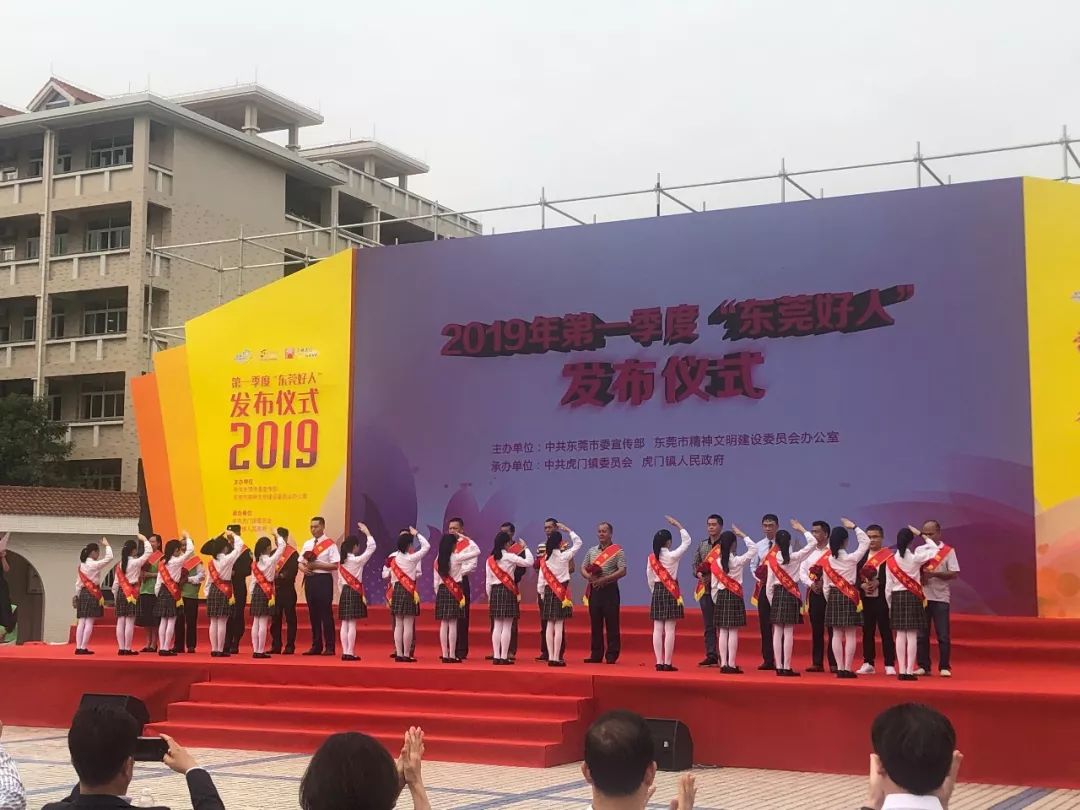 近年來,東莞市大力倡導與人友善、與社會友善、與自然友善的價值觀,弘揚中華民族傳統美德。2019年3月28日,由東莞市文明辦舉辦的《東莞市2019年第一季度“東莞好人”》發布儀式在虎門外語學校隆重舉行,市委常委、宣傳部部長楊曉棠,市委宣傳部副部長、文明班主任李國全,市文明辦副主任張超,虎門鎮領導班子,各社區宣傳委員、文化站管理員以及虎門外語學院學生代表約500人參加了發布會。