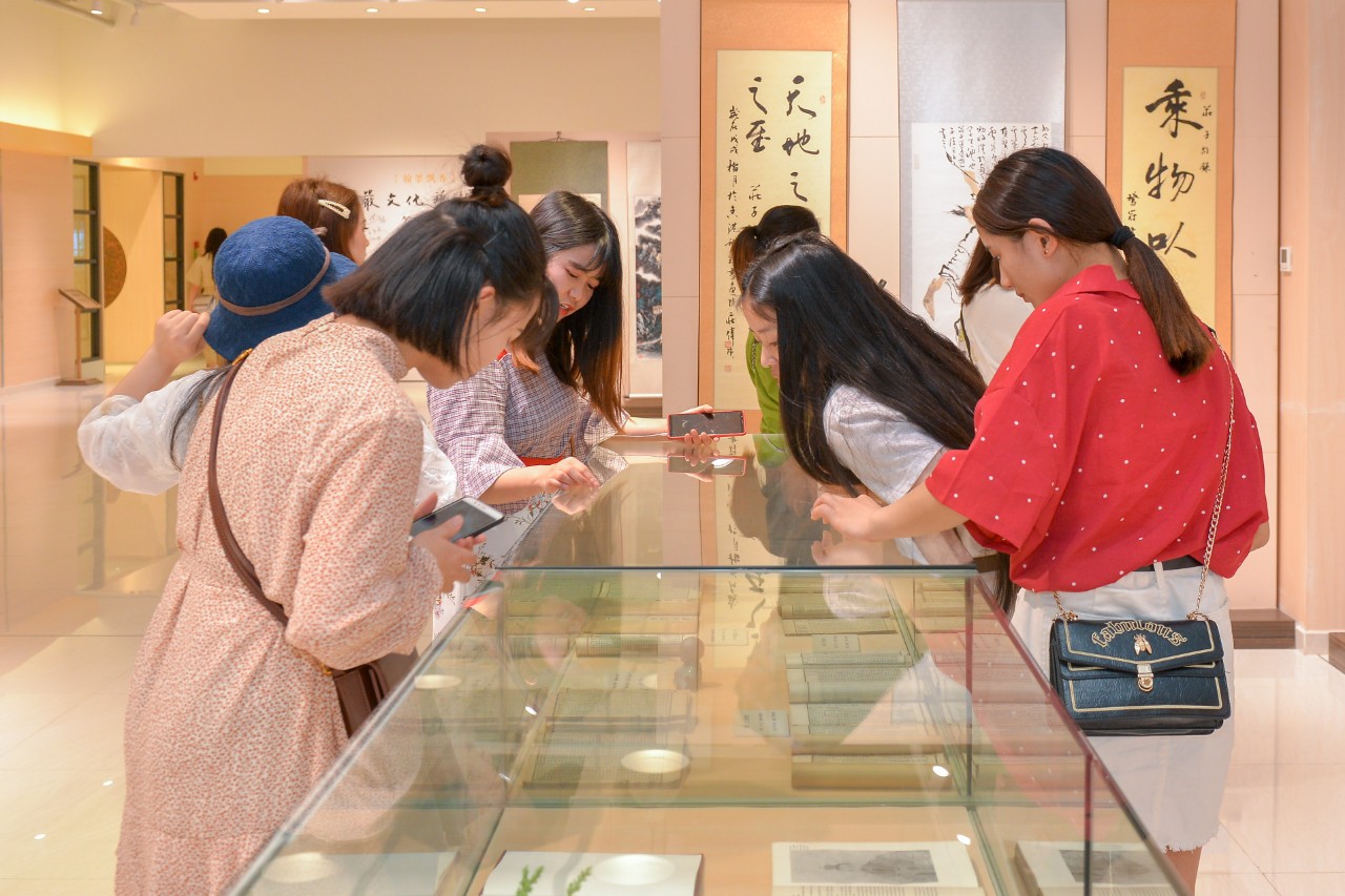 ▲觀看《莊嚴文化藝術展》作品