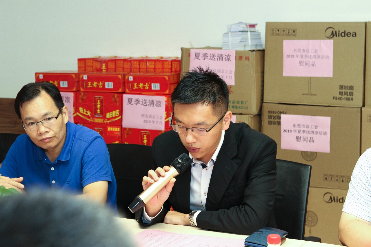 緊接著,東莞市總工會副主席何志雄發(fā)表講話,早已聽聞力嘉集團注重職工文娛生活,在工作之余營造出和諧、友善工作氛圍;此次到來力嘉集團,是代表市委市政府為一線員工送上慰問品,同時檢查企業(yè)防暑降溫工作落實情況,希望力嘉繼續(xù)做好員工防暑降溫措施,發(fā)揮好企業(yè)與員工的橋梁與紐帶作用,切實關(guān)心職工身體健康,扎實做好高溫天氣后勤保障工作,為員工提供平安、舒適的工作環(huán)境。??