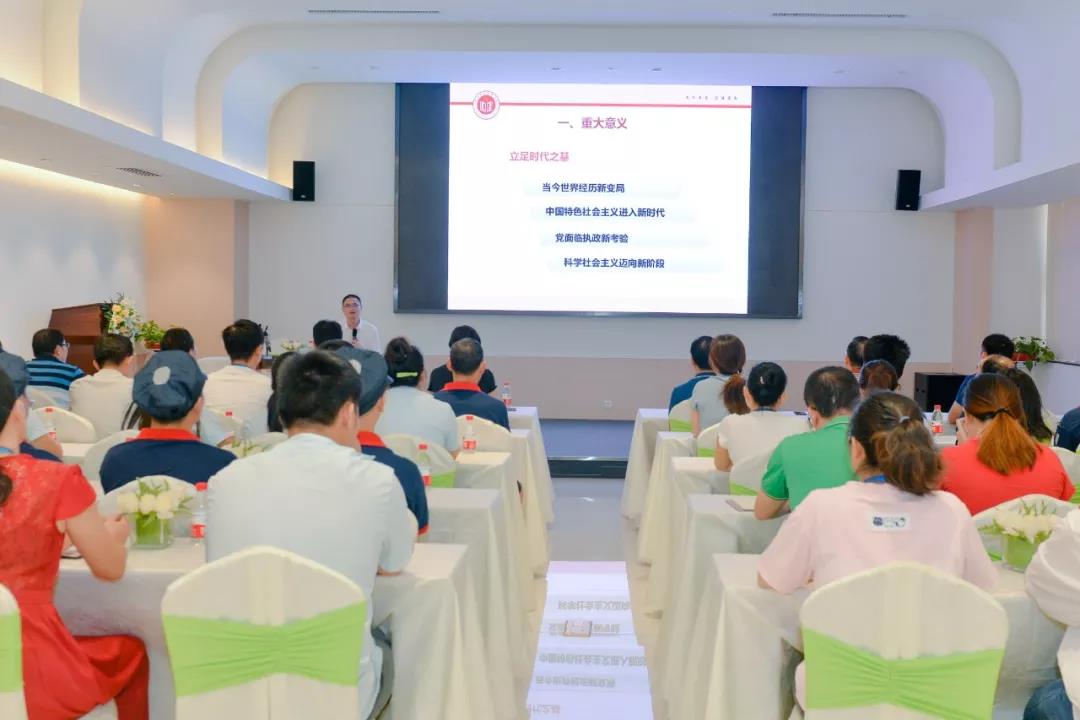 緊接著,東莞市委黨校文化與社會教研部主任楊家寧以《習近平新時代中國特色社會主義思想》為題進行宣講,解讀了“習近平新時代中國特色社會主義思想”的重大意義、豐富內涵、時代背景和歷史貢獻,他指出:實現中華民族偉大復興必須長期堅持習近平新時代中國特色社會主義思想,深入學習、深刻領會、堅決貫徹黨的十九大精神,堅定政治立場,堅持“四個意識”不動搖。