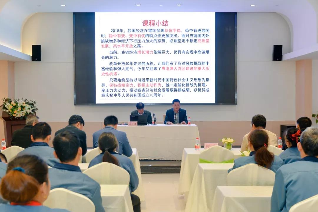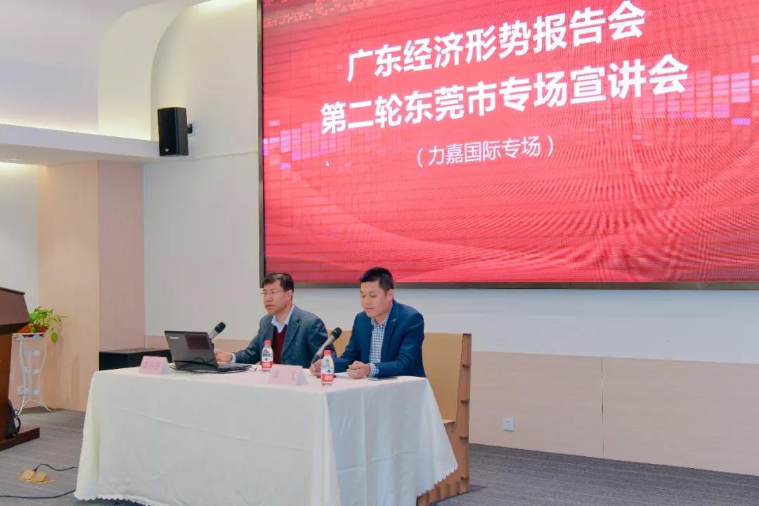 2019年12月5日,“廣東經濟形勢報告會第二輪東莞市專場宣講會(力嘉國際專場)”,在我園多功能會議廳隆重舉行,本次報告會特邀東莞市委黨校副校長、教授查日升先生進行分享,橋頭鎮宣教文體局局長張飛先生;宣教文體局副局長任劉倫先生;力嘉國際集團董事長助理、工會主席馬松綿先生;園區入駐企業高層管理代表;力嘉職工約120人參與宣講會。